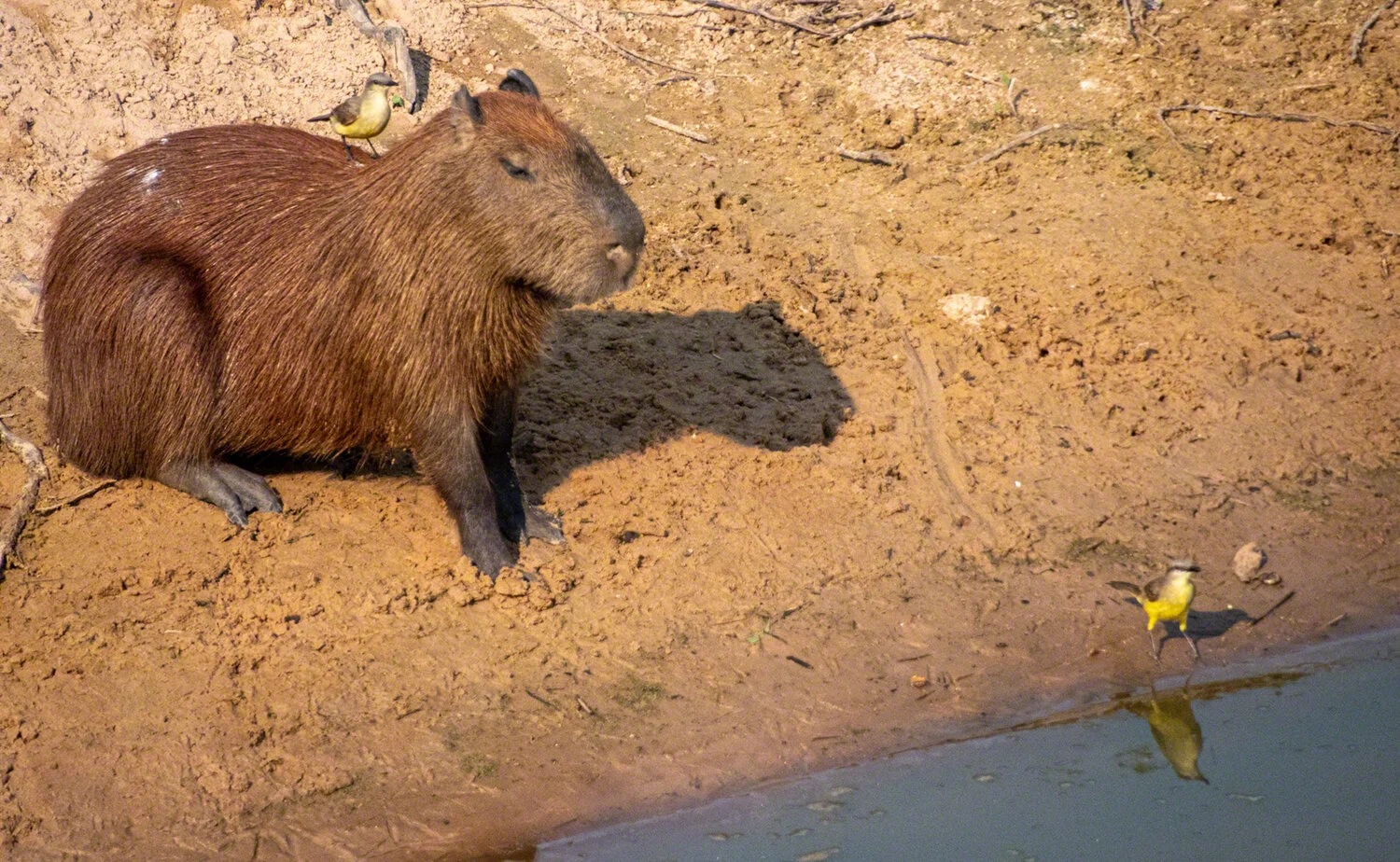 Capybaras are often spotted with birds sitting on their backs or heads. Their feathered friends are not always very well-behaved, as you can see from the white spots on the capybara’s back. But NOTHING seems to bother these rodents very much. They are the most placid animals I’ve ever seen…