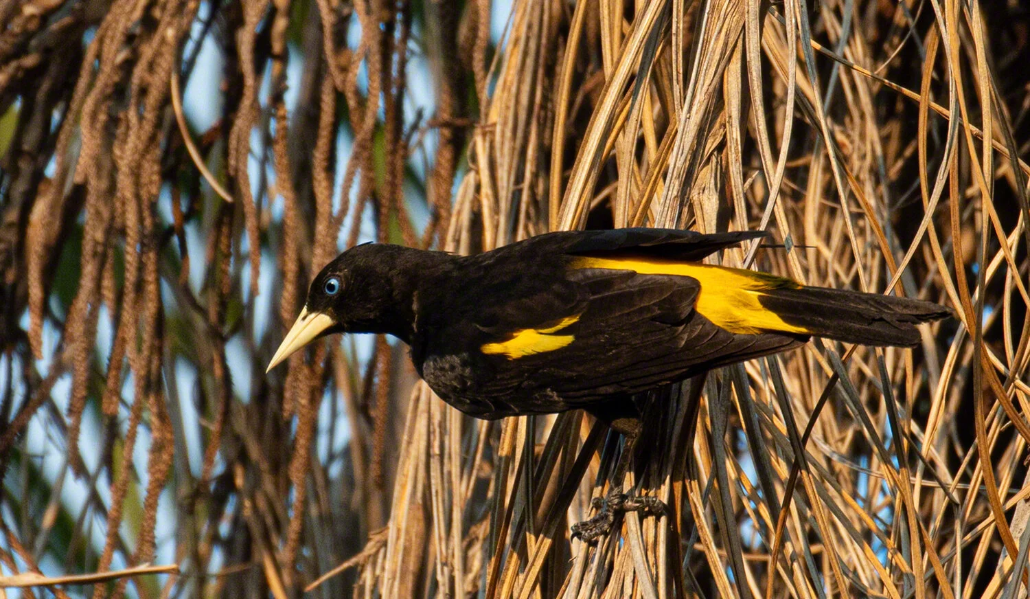 This Palm Tanager was NOT happy with the Giant Kiskadee trying to get in on the papaya action. As for me, I was thrilled to find that I had actually managed to freeze that Kiskadee in motion!